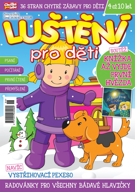 Zábavný časopis pro děti ve věku od 4 do 8 let.Pomocník pro rodiče, jak učit své ratolesti první písmenka, číslice, dovednosti a logickému uvažování. Osmisměrky, hádanky a spojovačky.