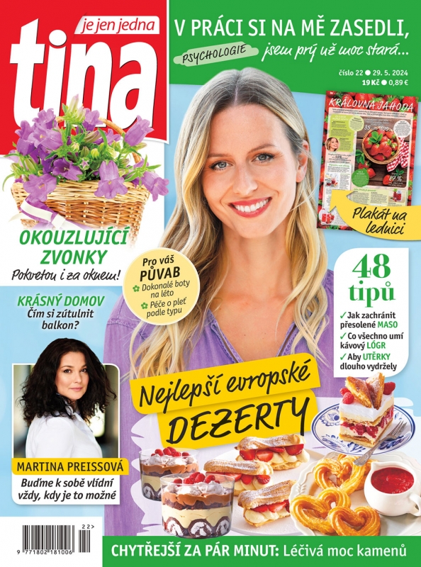 Jeden z nejčtenějších časopisů pro ženy na českém trhu. Tina svým čtenářkám naslouchá. Týden co týden jim na svých stránkách pomáhá najít odpověď či praktickou radu na otázky a problémy, týkajících se všech stránek jejich života. Tina je inspirativní. Recepty ověřené v Kulinárním studiu přinášejí nápady na každodenní i sváteční vaření a pečení. Tina motivuje. Pravdivé příběhy čtenářek, které zhubly, dávají námět i naději dalším ženám, které touží po změně svého životního stylu. Odborně zpracovaná zdravotní témata v podobě rad odborníků a novinek z medicíny řeší aktuální zdravotní otázky včetně alternativních možností léčby. Nechybí klasická ženská témata jako móda, kosmetika, psychologie. Tina je moderní časopis pro zvídavé ženy, založený na hodnotných informacích, příjemném grafickém zpracování a milých fotografiích.